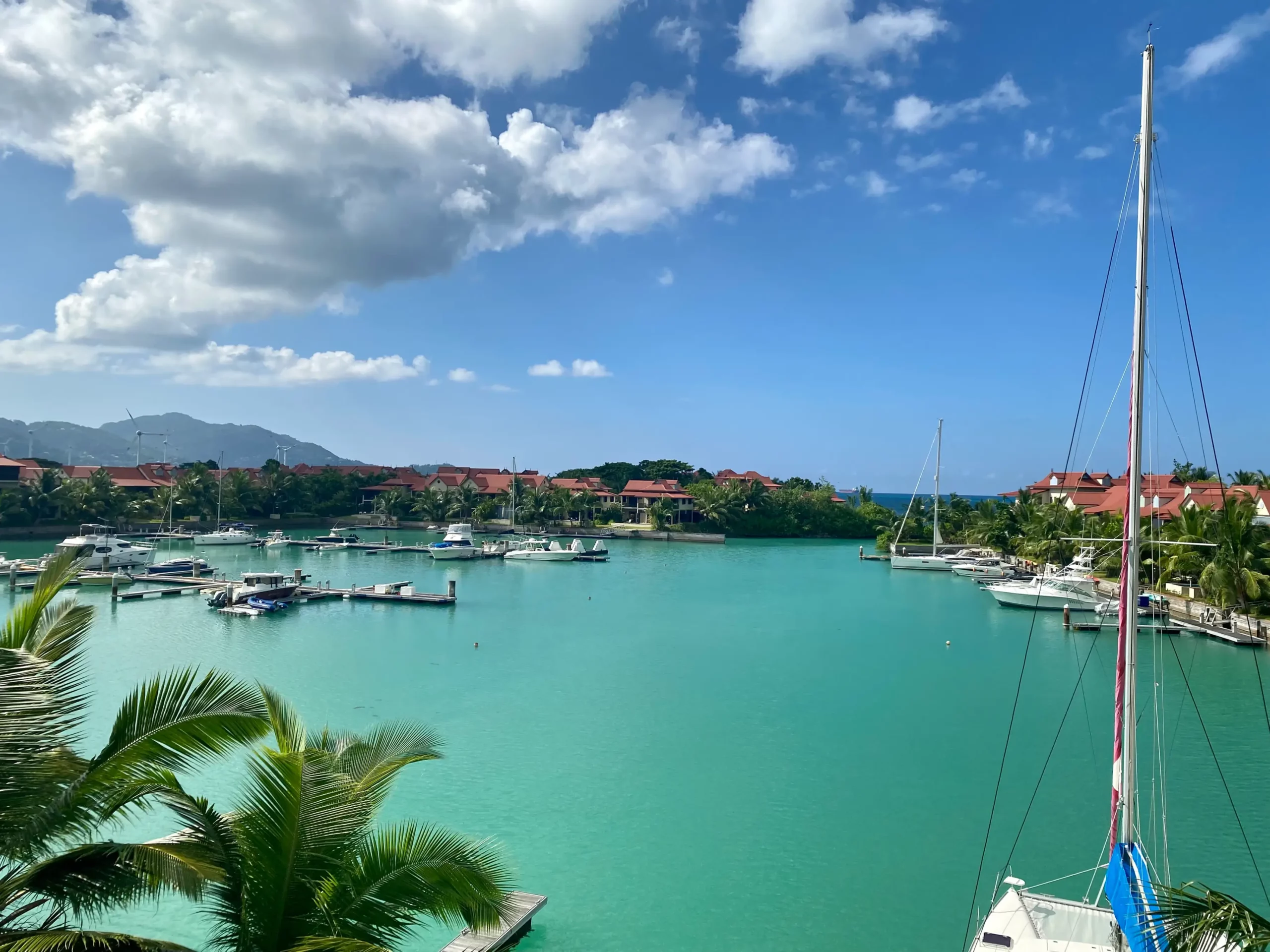 This stylish, bright and airy 3 bedroom perfectly located second floor loft apartment, overlooks the stunning turquoise waters of Eden Island marina and out to the open Indian Ocean. Wake up in the morning to a magnificent sweeping vista of both the sea and mountains from your covered verandahs and bedrooms. The apartment comprises of 3 spacious en-suite bedrooms totalling 173 sq metres. All furniture and a fully equipped kitchen with essential appliances, including a dishwasher are included. The apartment comes with a golf buggy (EPV) so that you can explore the island and its private beaches and facilities. A key feature of this apartment is its prime location, as it within walking distance to the communal pools, private beach, tennis court, fitness centre, parking station, Eden Plaza and its many restaurants. Eden Island is situated just 200 metres away from Mahé, the country’s main island which is home to the capital of Victoria and the international airport is only 7 minutes drive away. For those boating enthusiasts the apartment boasts its own private mooring on its doorstep, in the deep water marina Basin 4, which is your direct access to explore the 115 stunning islands of the Seychelles.