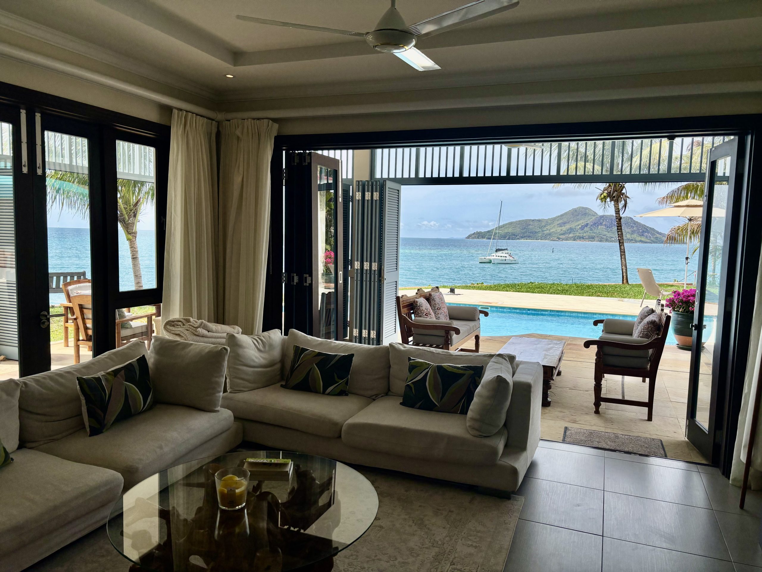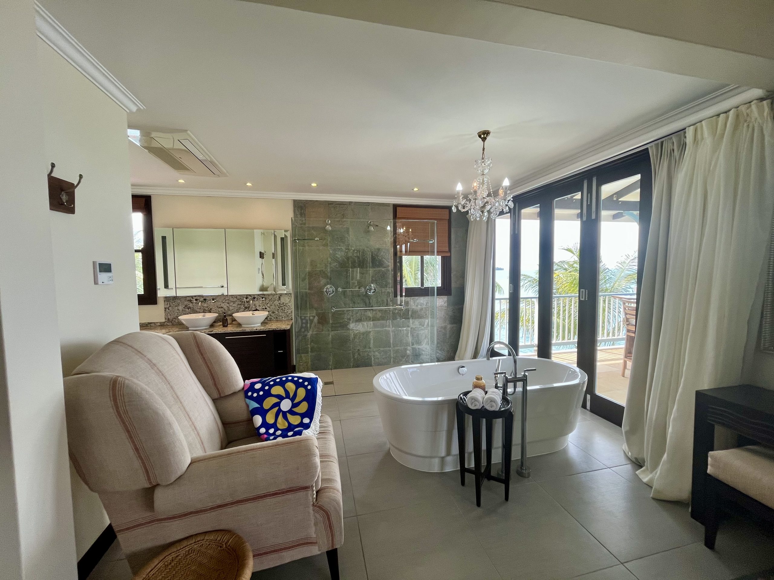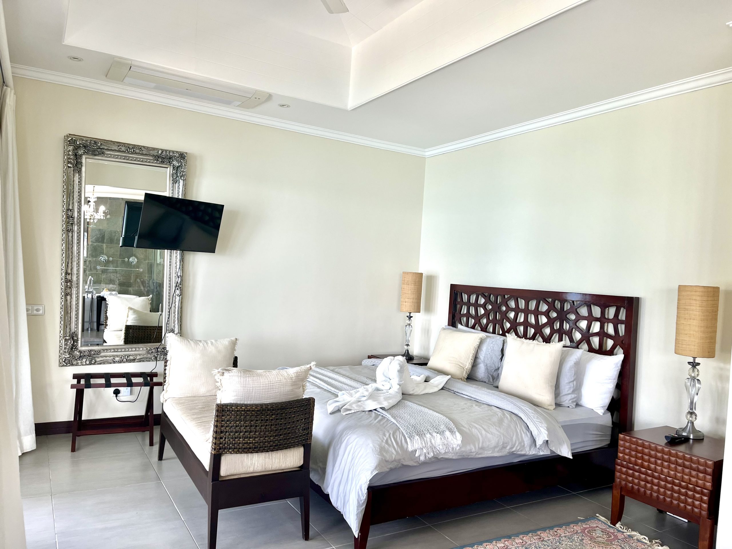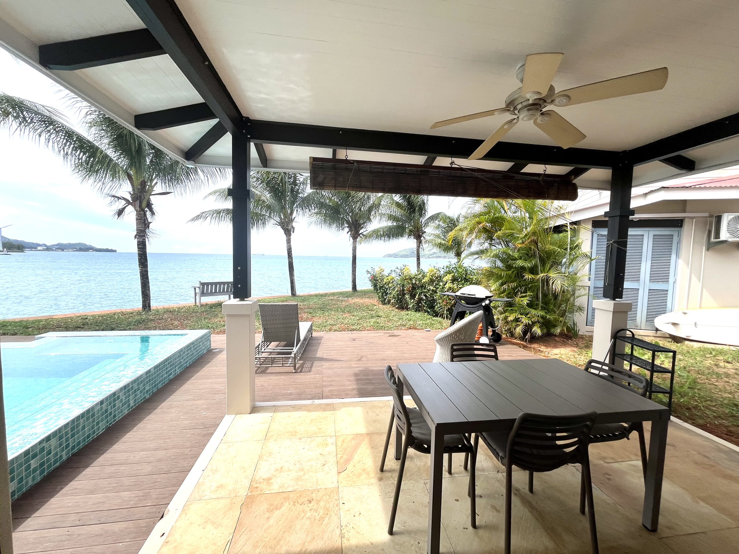 Located on the outskirts of the island with spectacular ocean views, this property is truly special. The land consists of 1377 m², almost 180 degree sea views and pretty much nobody overlooking you. The main house comprises 4 bedrooms, a separate free standing cottage has two bedrooms, kitchen, living room and a private plunge pool. There is another bedroom and bathroom for a caretaker or nanny. There is a private mooring for the unit, a golf buggy to get around the island and all furniture and kitchen appliances are included. What are you waiting for, come and visit this beautiful home today.