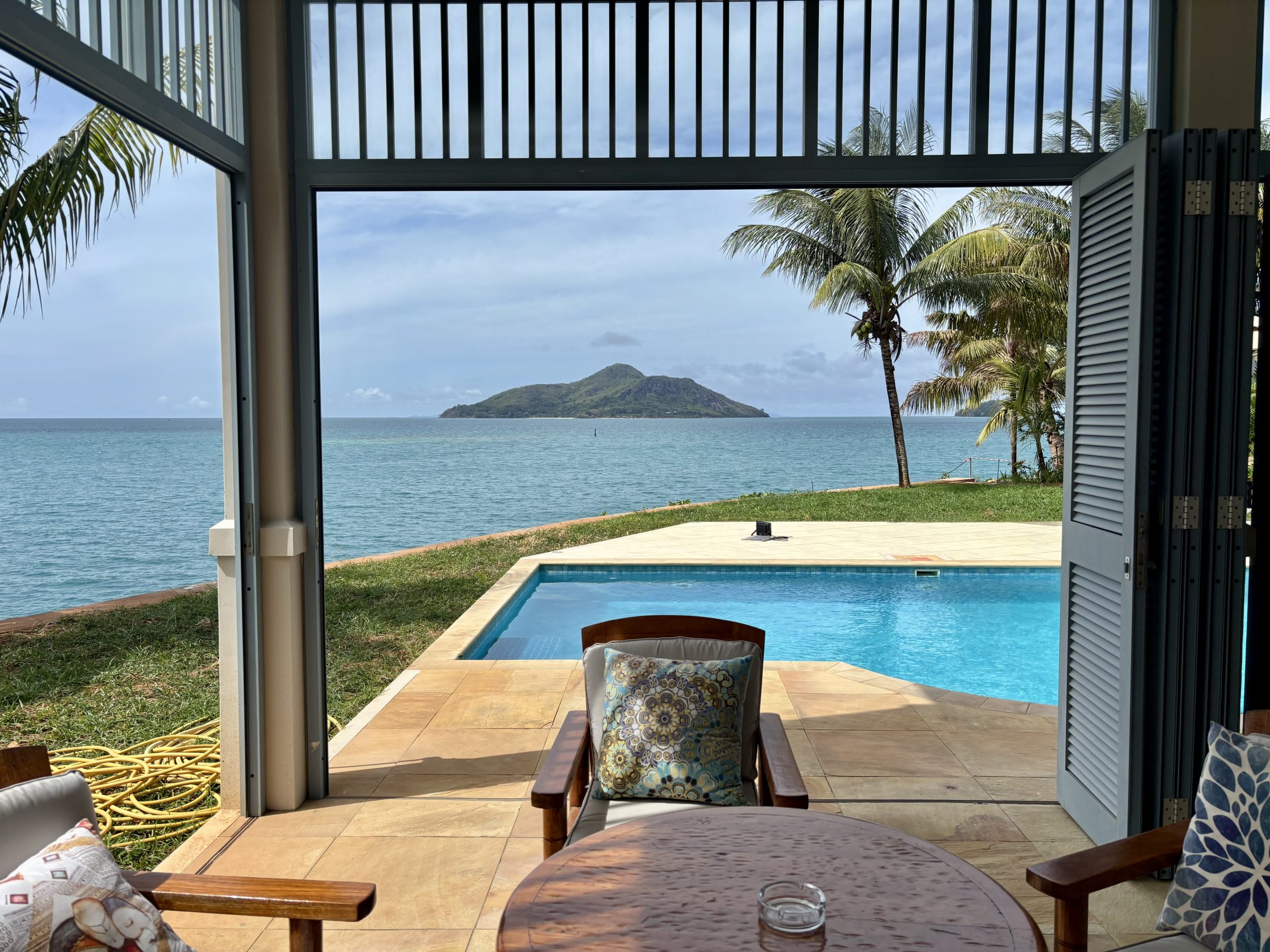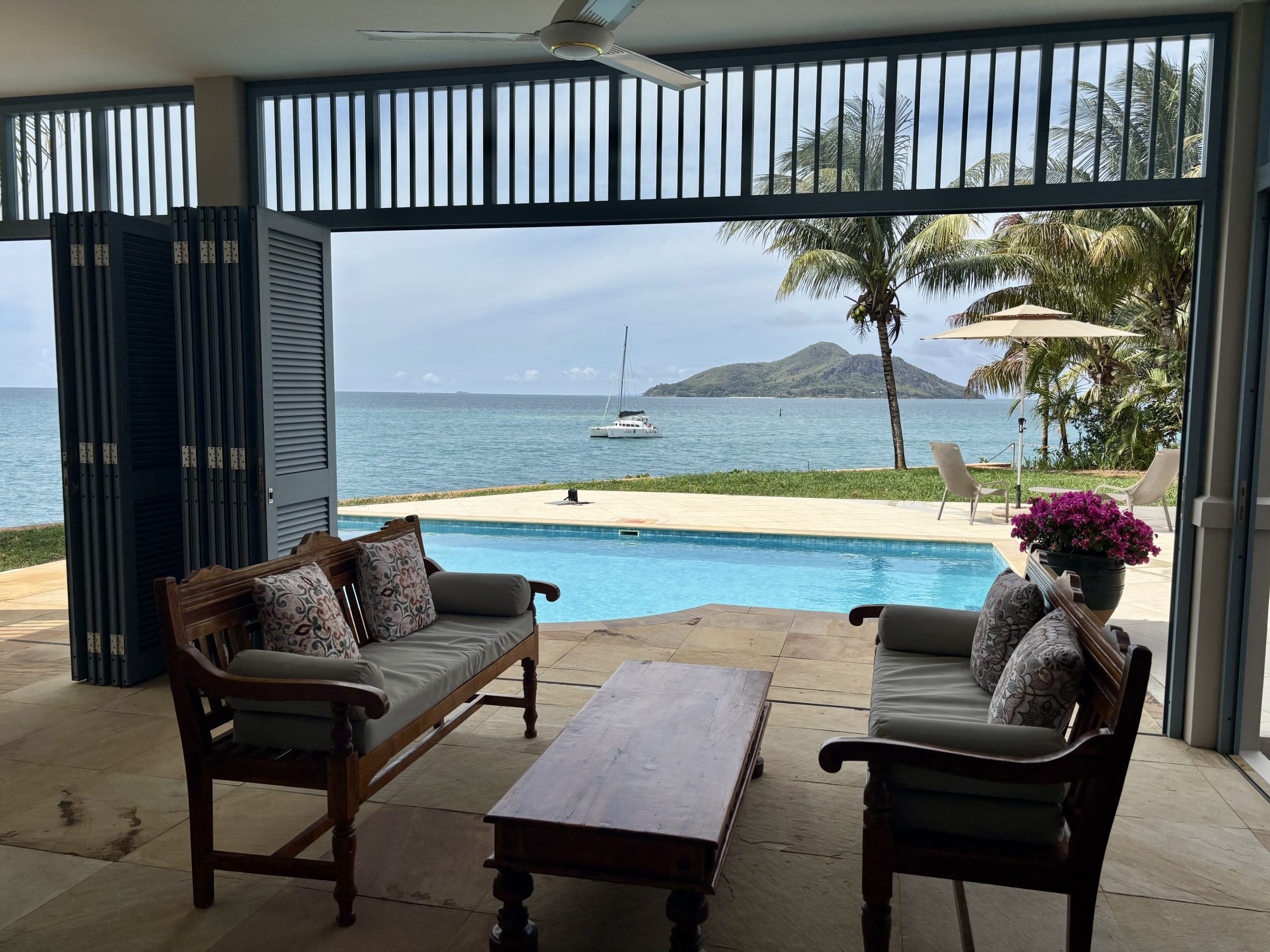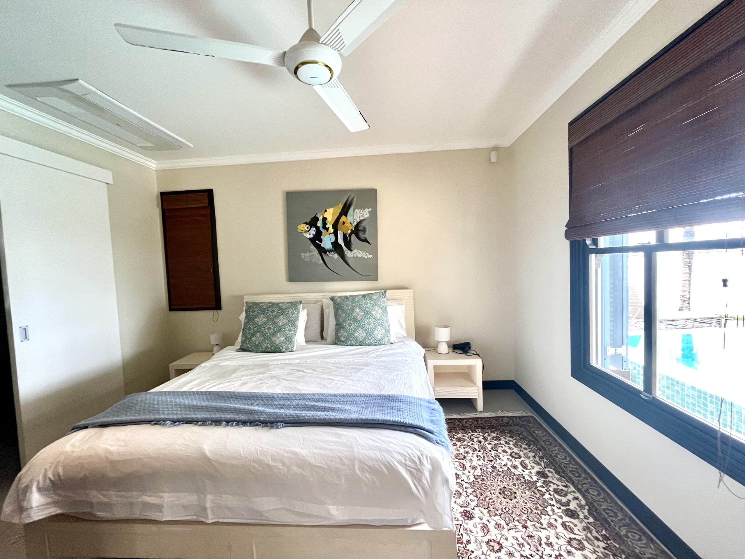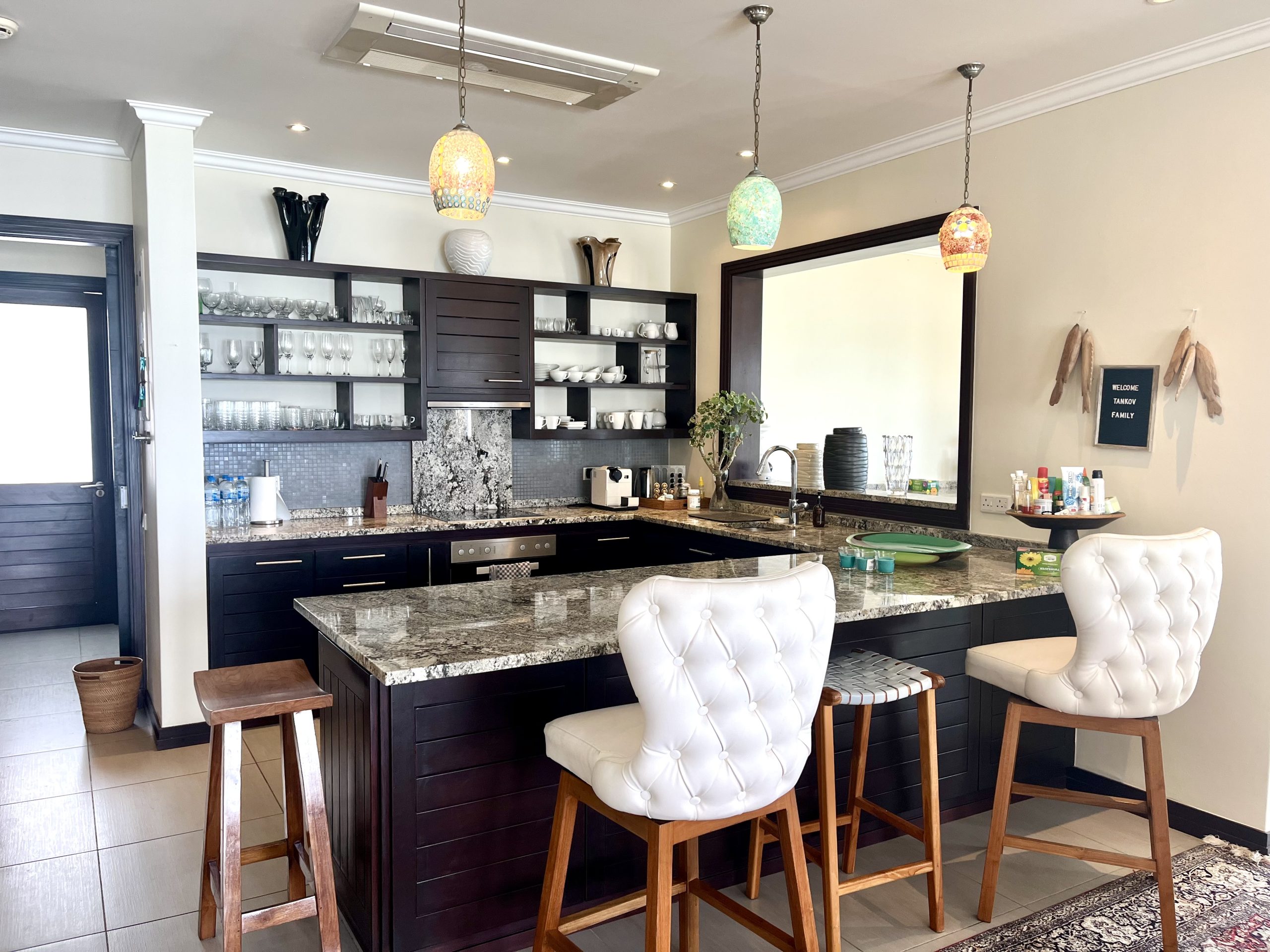 Located on the outskirts of the island with spectacular ocean views, this property is truly special. The land consists of 1377 m², almost 180 degree sea views and pretty much nobody overlooking you. The main house comprises 4 bedrooms, a separate free standing cottage has two bedrooms, kitchen, living room and a private plunge pool. There is another bedroom and bathroom for a caretaker or nanny. There is a private mooring for the unit, a golf buggy to get around the island and all furniture and kitchen appliances are included. What are you waiting for, come and visit this beautiful home today.